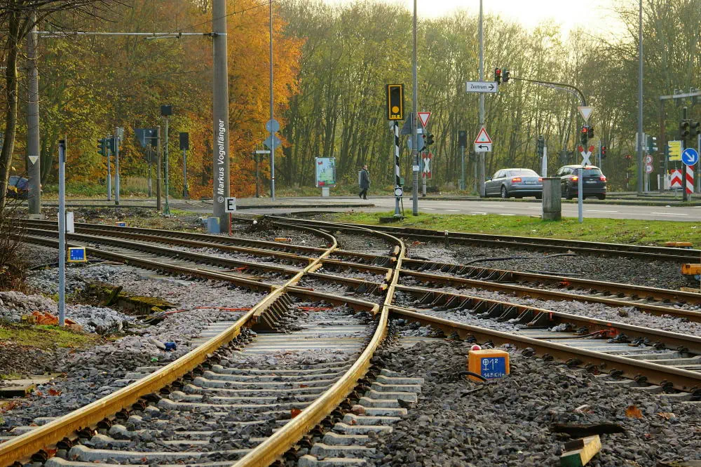 Die neuen Gleiskreuzungen auf der Emdener Straße.