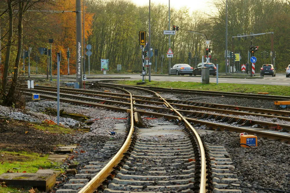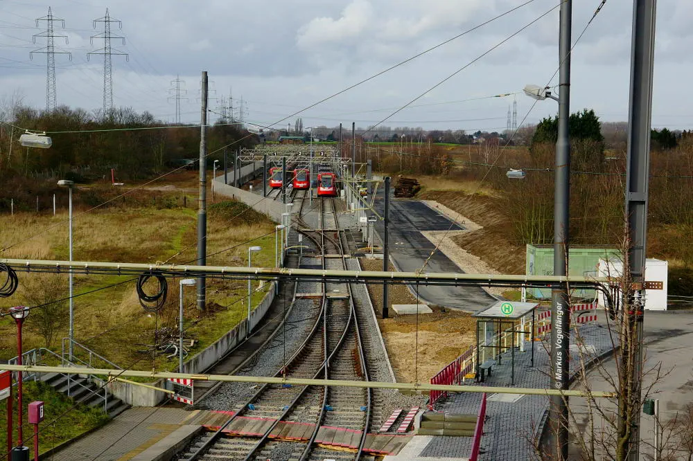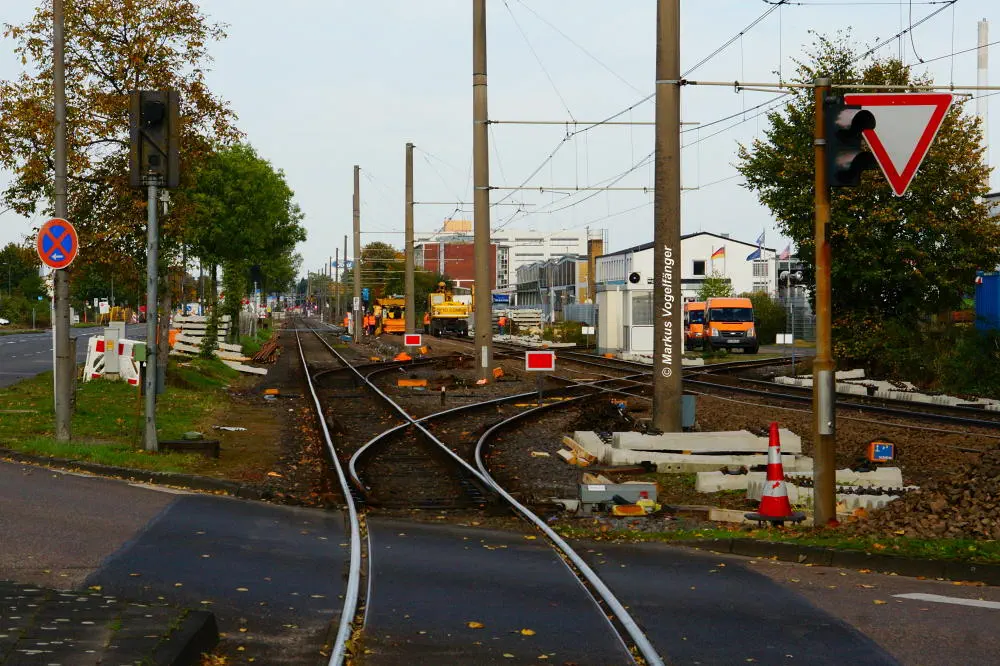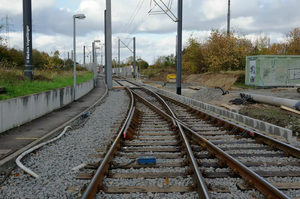 Die neuen Schwellen zwischen den Haltestellen Fordwerke Mitte und Fordwerke Nord.