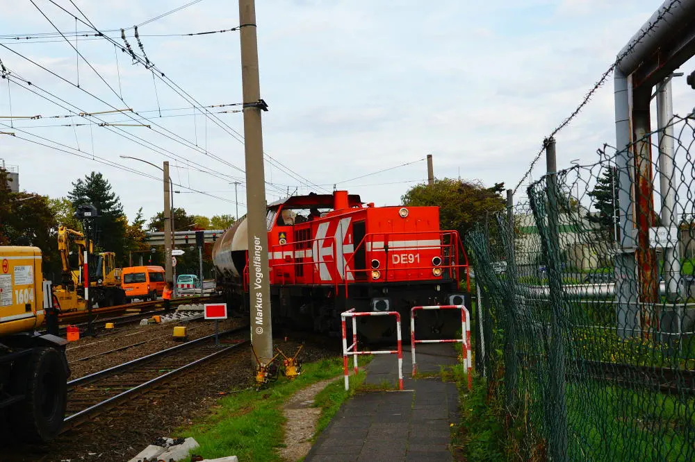 DE91 beim überqueren der Stadtbahngleise an der Haltestelle Fordwerke Nord am 19.10.2013.