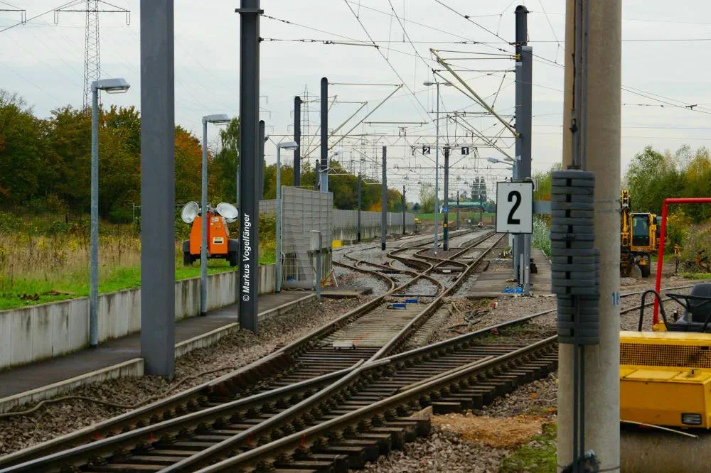 Die neue Weiche für Gleis 1 (ehemaliges Gleis 2, Mitte) und Gleis 2 (neues Gleis ganz links) wurde angeschlossen und die alte Weiche zwischen dem alten Gleis 1 (neues Regelwendegleis der Linie 12, rechts) und Gleis 1 (altes Gleis 2, Mitte) wurde ausgebaut.