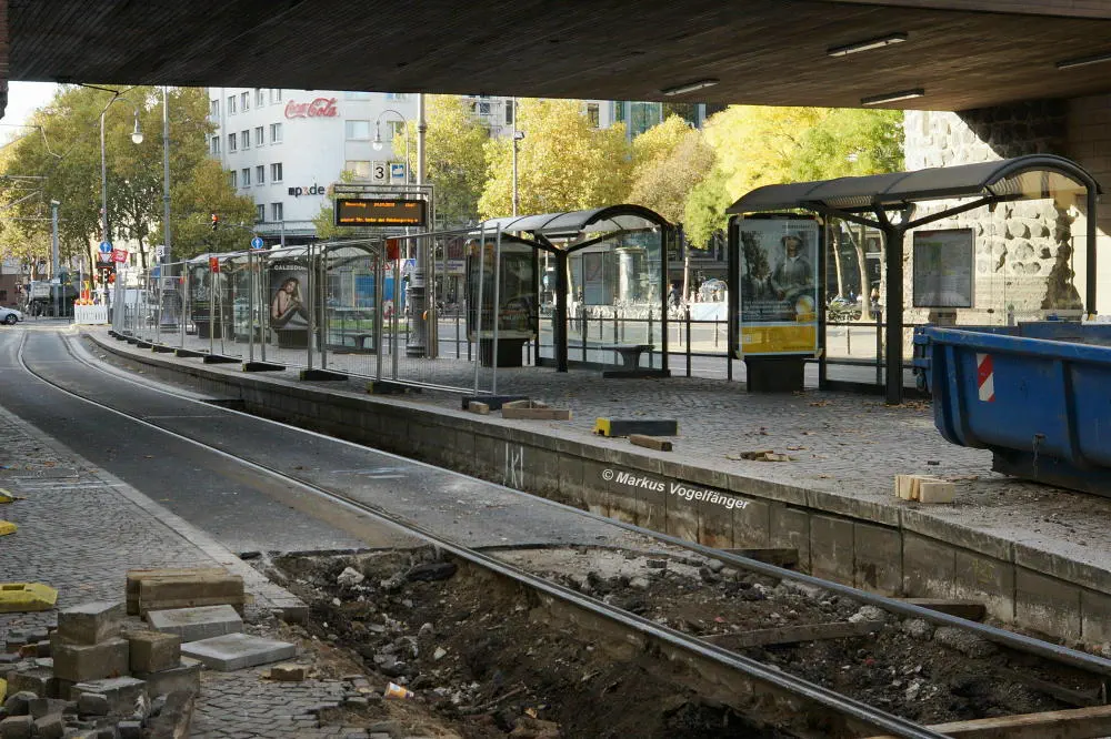 Aktueller Bauzustand an der Haltestelle Rudolfplatz (Richtung Moltkestraße) am 24.10.2013.