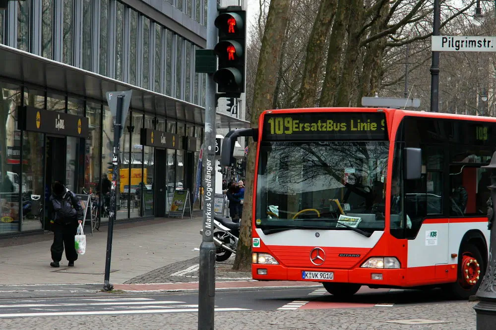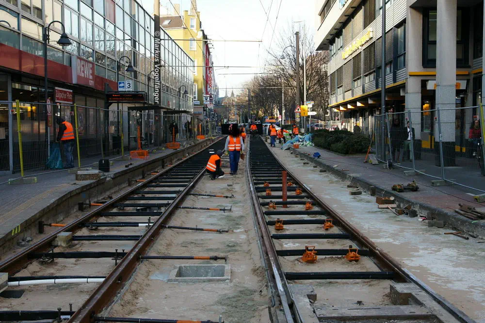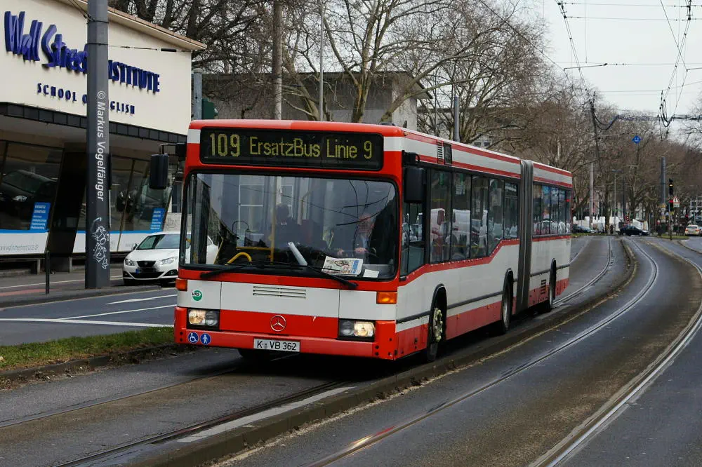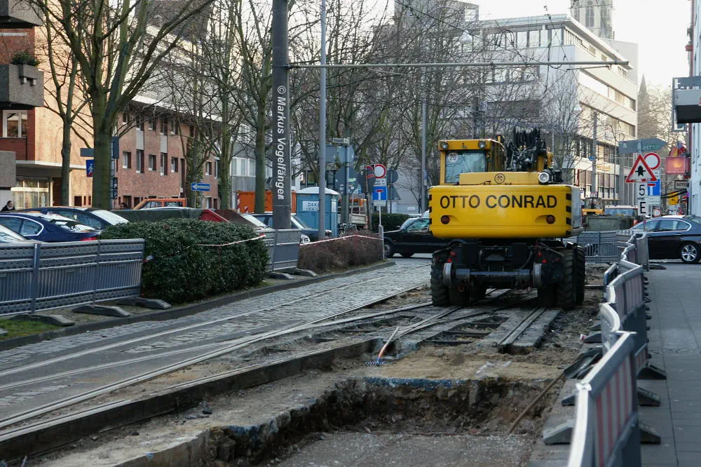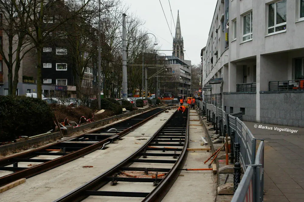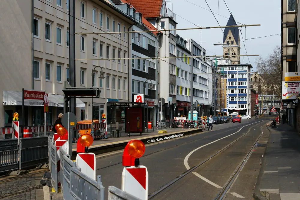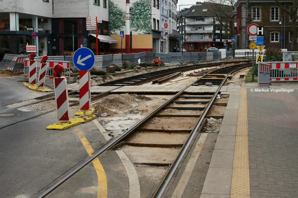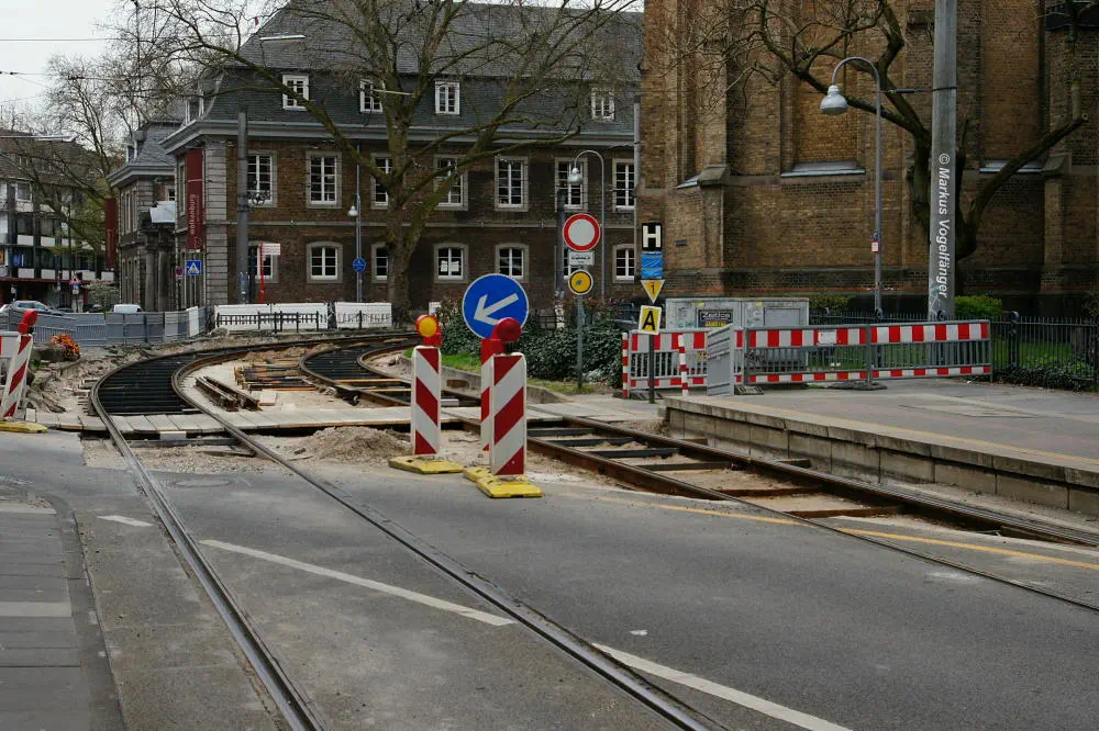 Zwischen den Haltestellen Zülpicher Platz und Mauritiuskirche werden seit diesem Wochenende (23.03.2013) die Gleise getauscht. Aus diesem Grund wird die Linie 9 bis zum 29.03.2013, sowie vom 02.04.2013 bis zum frühen Morgen des 08.04.2013 getrennt. Dabei wird die Strecke Sülz, Hermeskeiler Platz bis zur Universität, sowie der Abschnitt Königsforst bis zur Moltkestraße mit Stadtbahnen bedient. Den fehlenden Abschnitt übernehmen Ersatzbusse.
