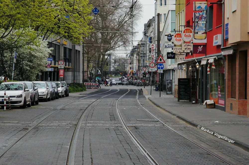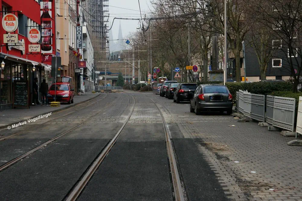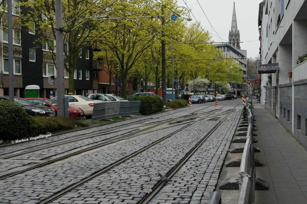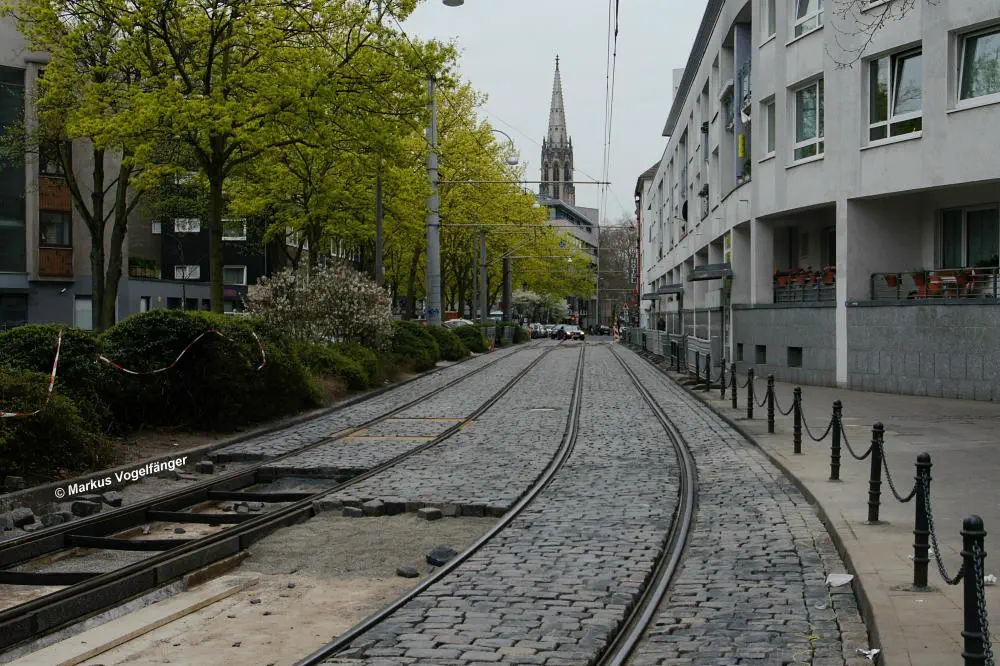 aktueller Bauzustand auf der Jahnstraße mit Blick zur Haltestelle Zülpicher Platz am 21.04.2013.