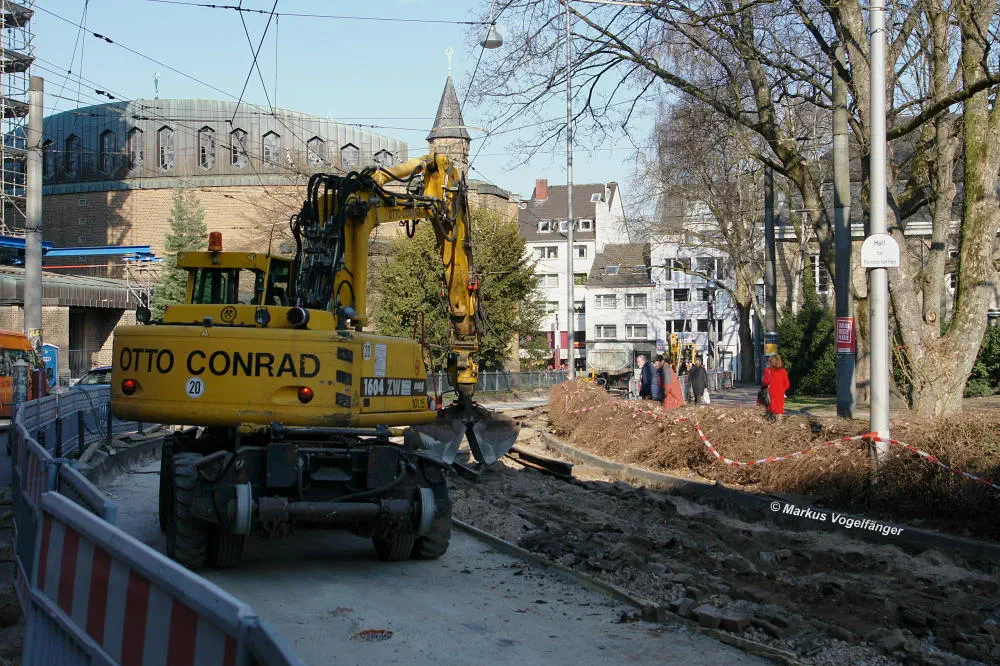 aktueller Bauzustand auf der Jahnstraße an der Haltestelle Zülpicher Platz am 02.04.2013.