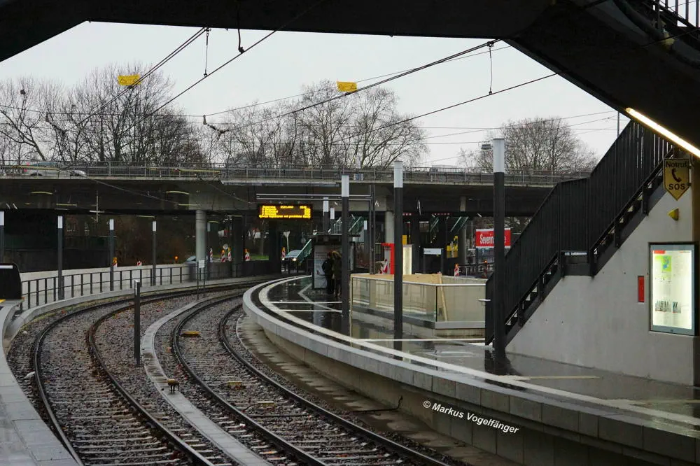Blick auf die neuen Bahnsteige der oberirdischen Haltestelle