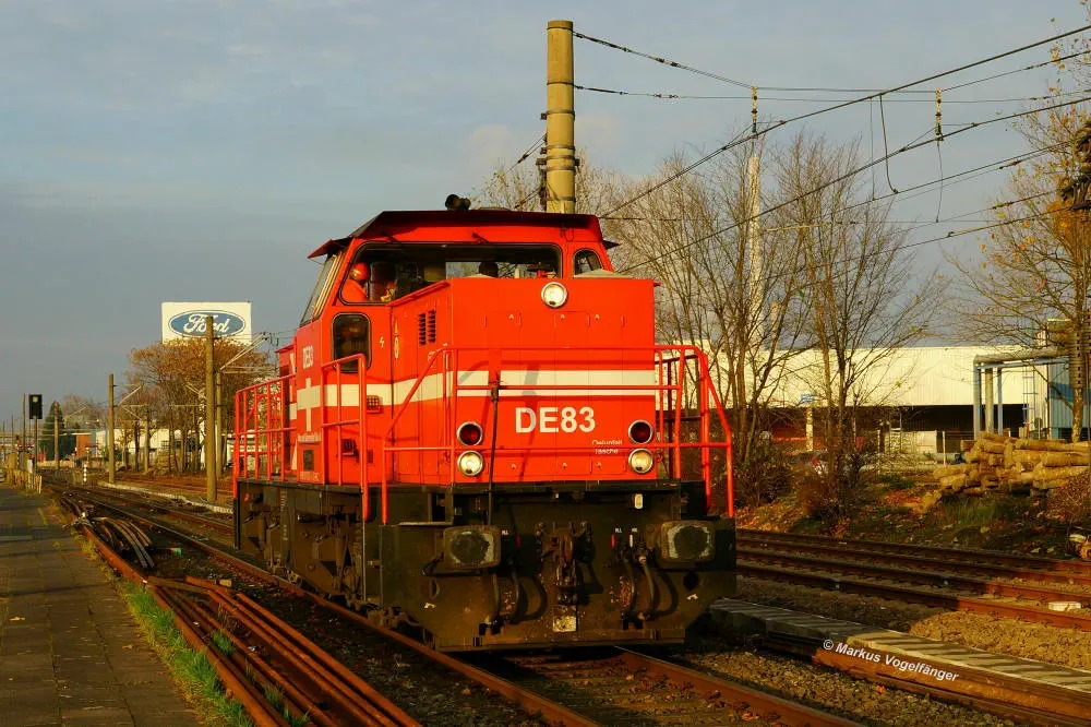 Ein Güterzug kurz vorm überqueren der Stadtbahngleise an der Haltestelle Fordwerke Nord am 19.10.2013.