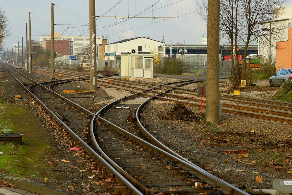 Die neuen Gleiskreuzungen auf der Emdener Straße.