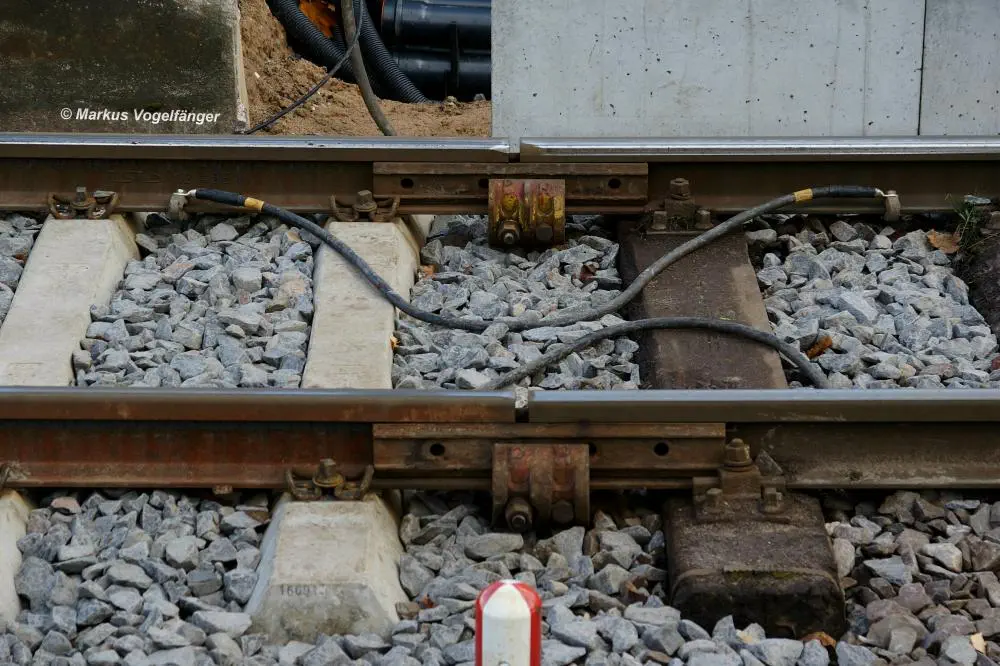 Frische Schweißverbindungen der neuen Gleise zwischen den Haltestellen Geestemünder Straße und Fordwerke Süd.