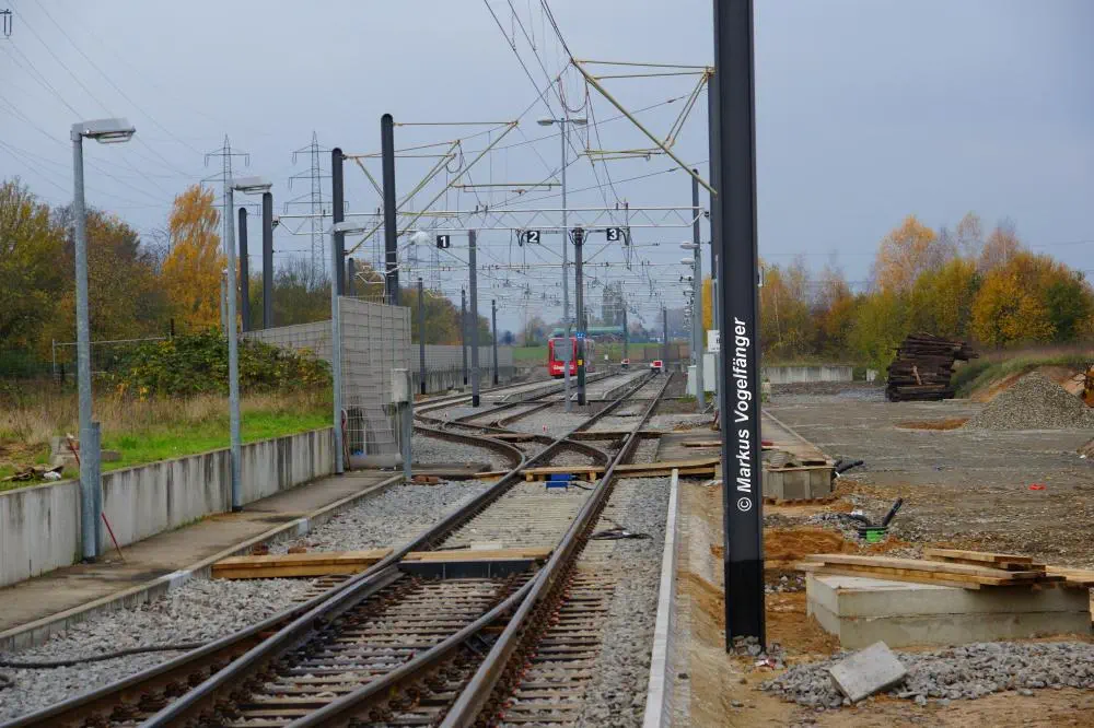 Die neuen Schwellen zwischen den Haltestellen Fordwerke Mitte und Fordwerke Nord.