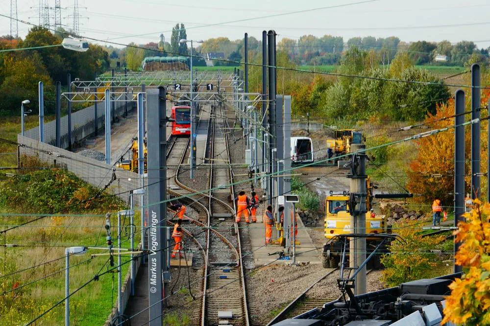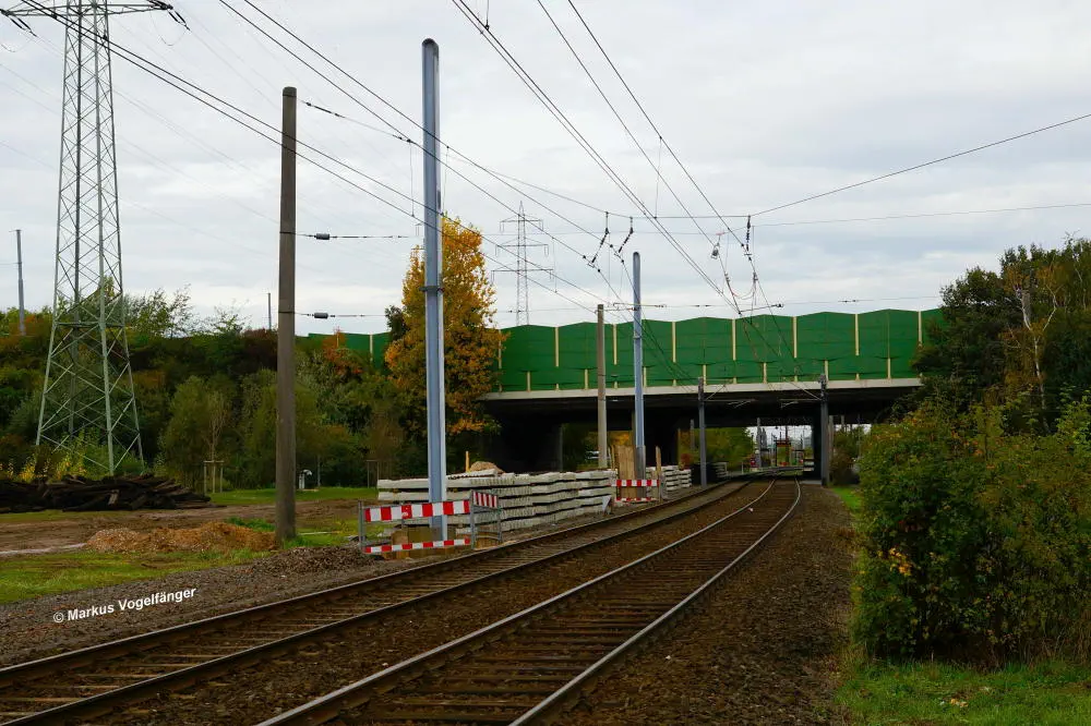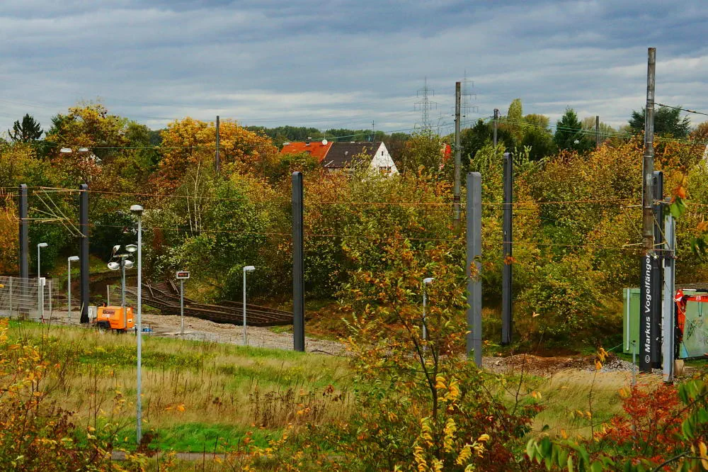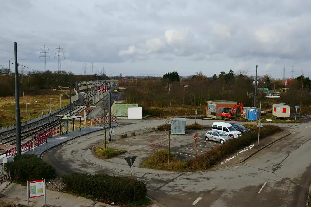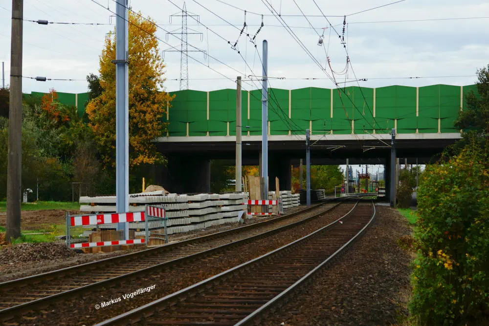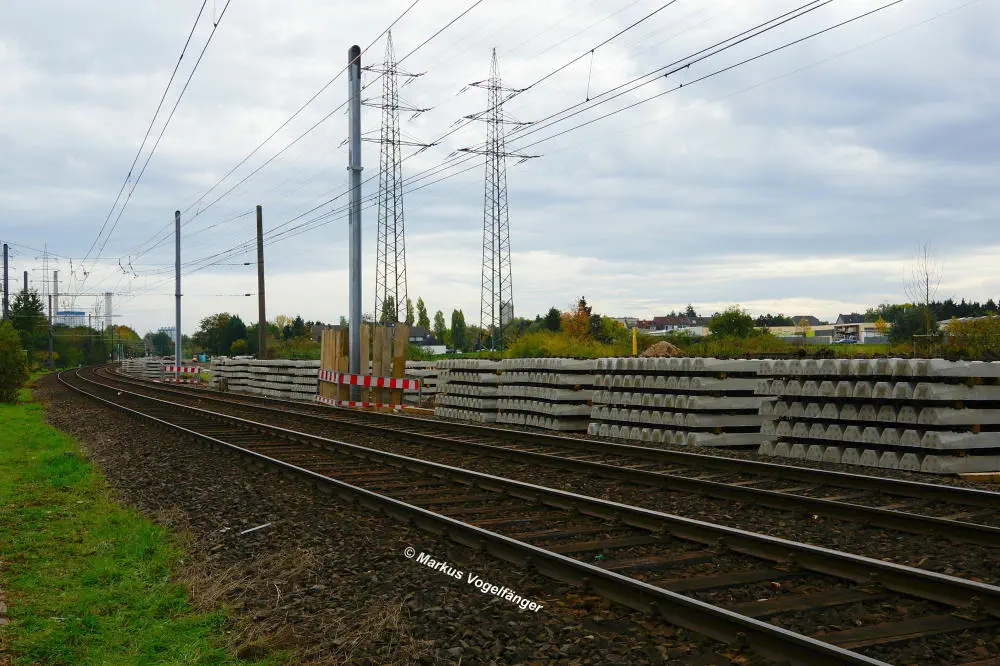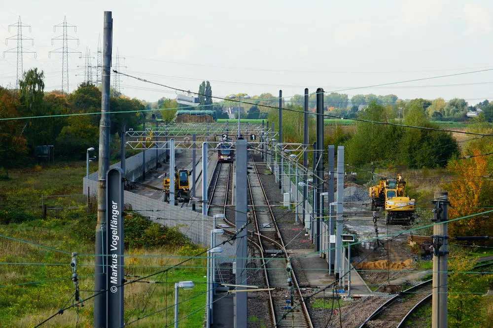 Der aktuelle Bauzustand des Streckenabschnittes zwischen den Haltestellen "Merkenich Mitte" und "Merkenich" am 09.11.2013.