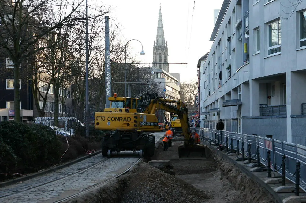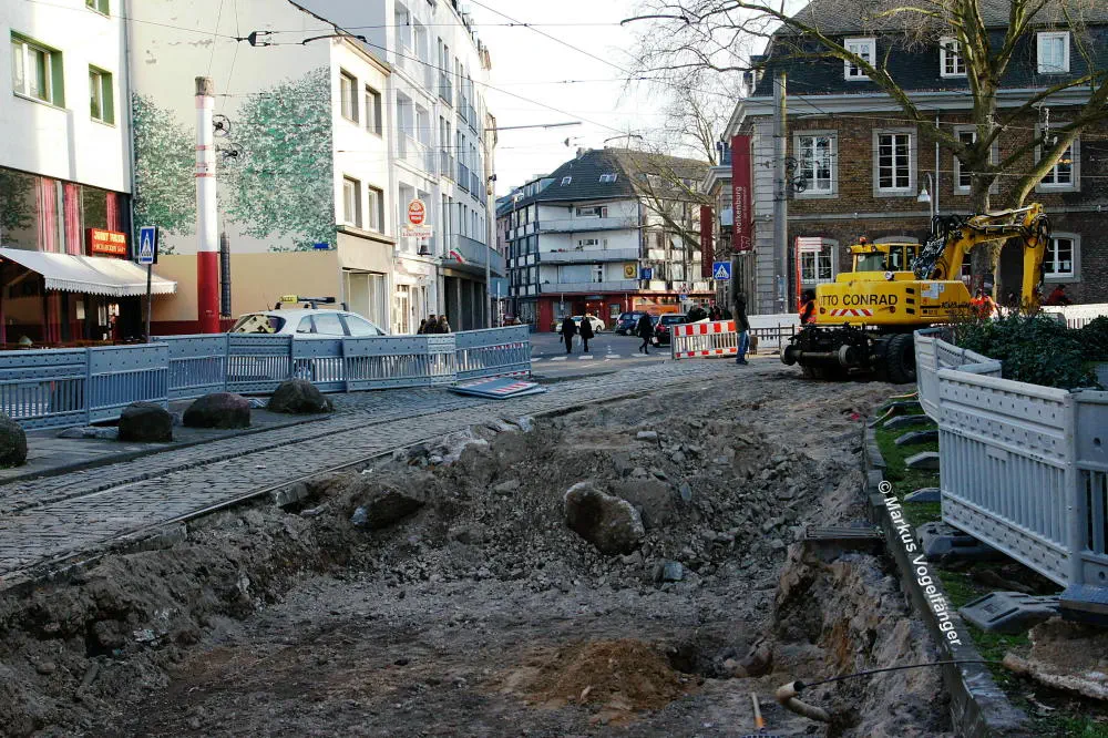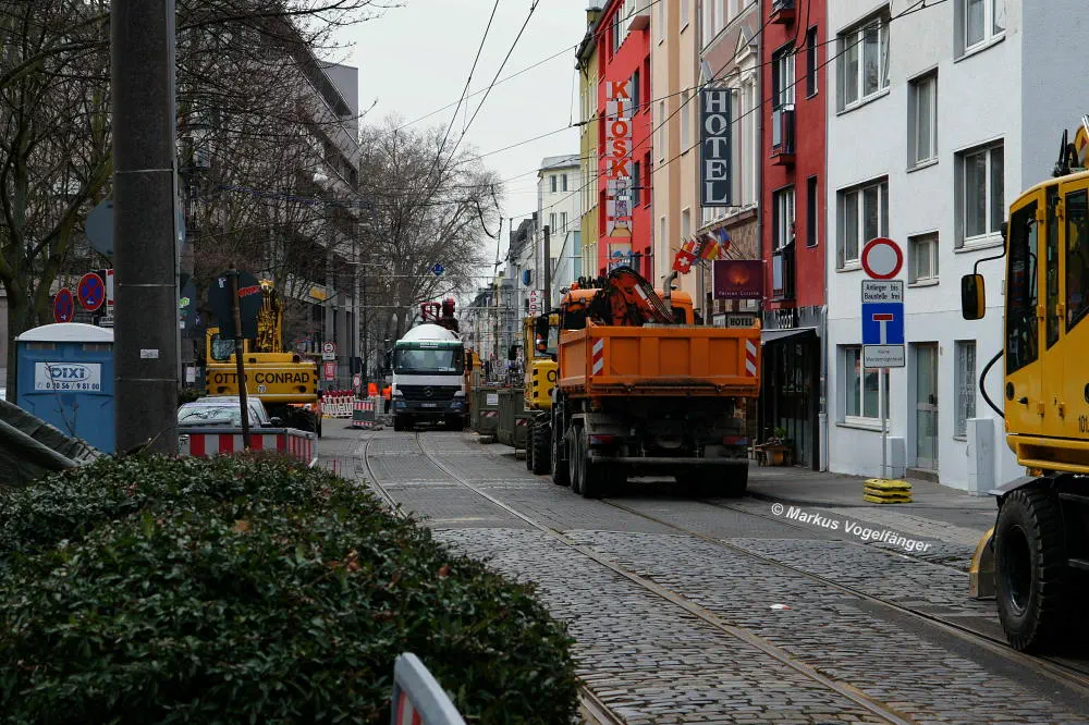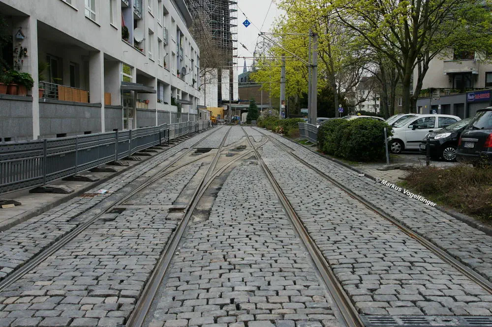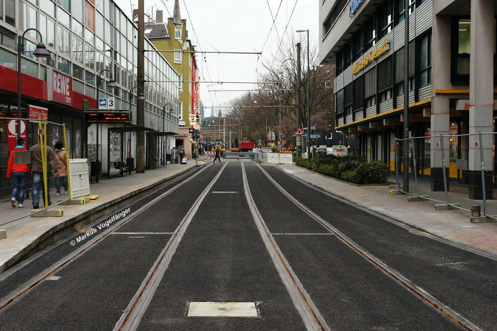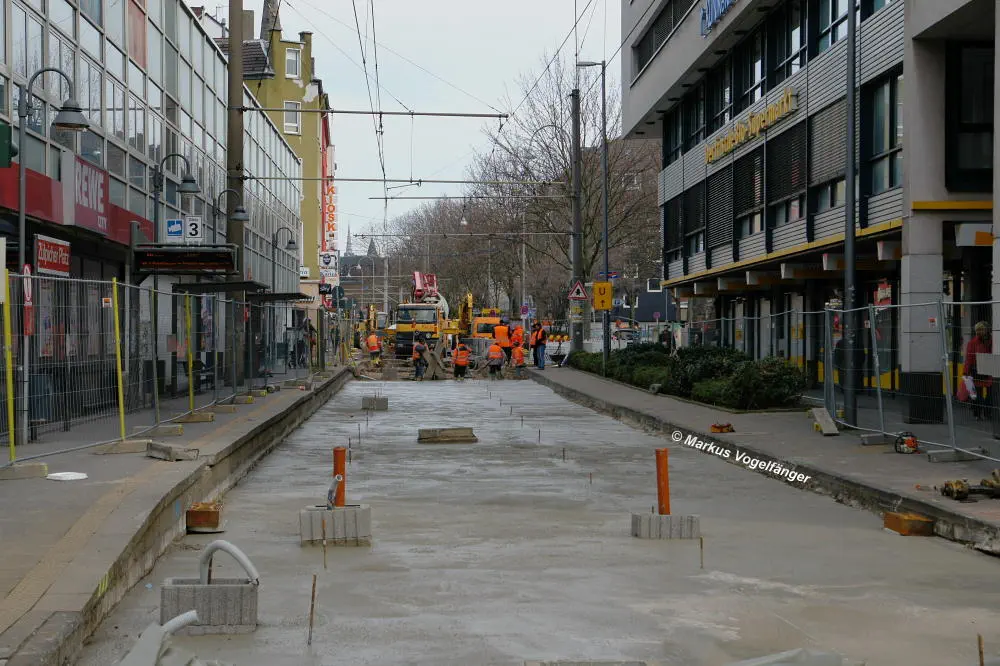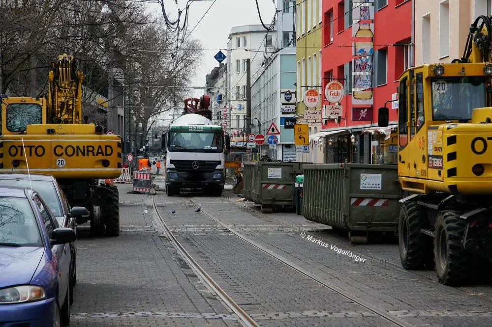 aktueller Bauzustand auf der Jahnstraße mit Blick zur Haltestelle Zülpicher Platz am 21.04.2013.