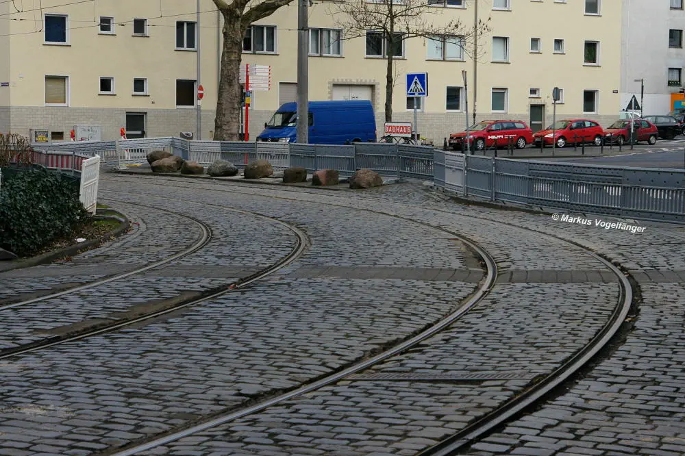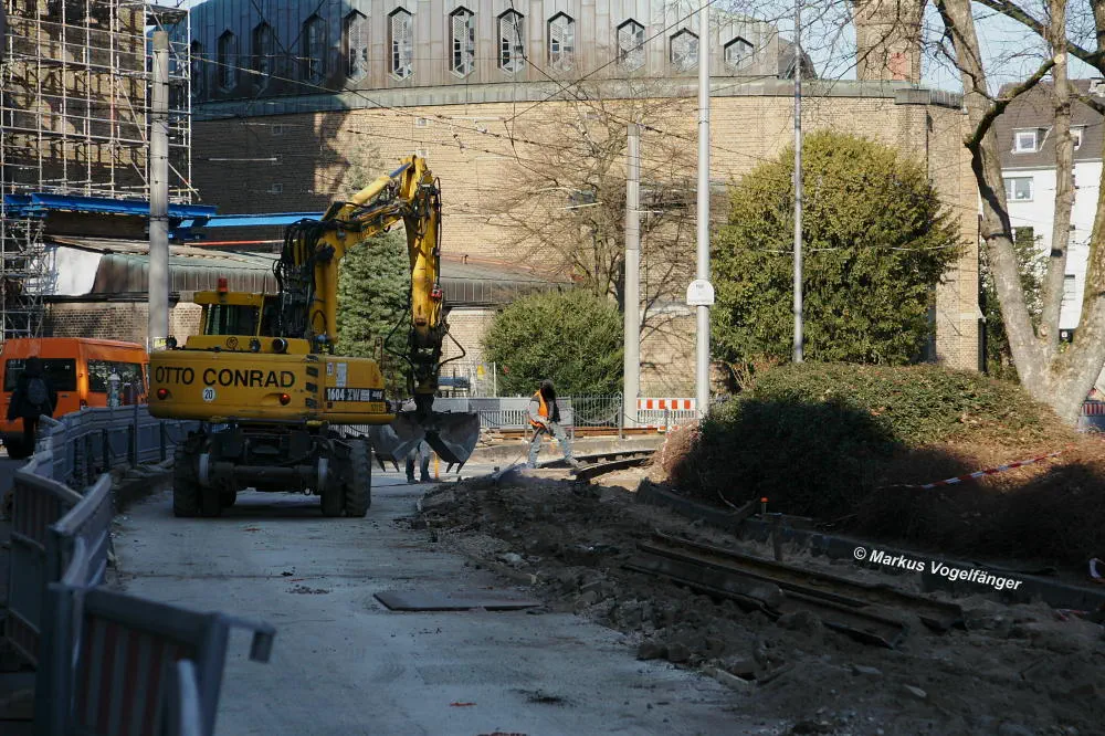 aktueller Bauzustand auf der Jahnstraße an der Haltestelle Zülpicher Platz am 02.04.2013.